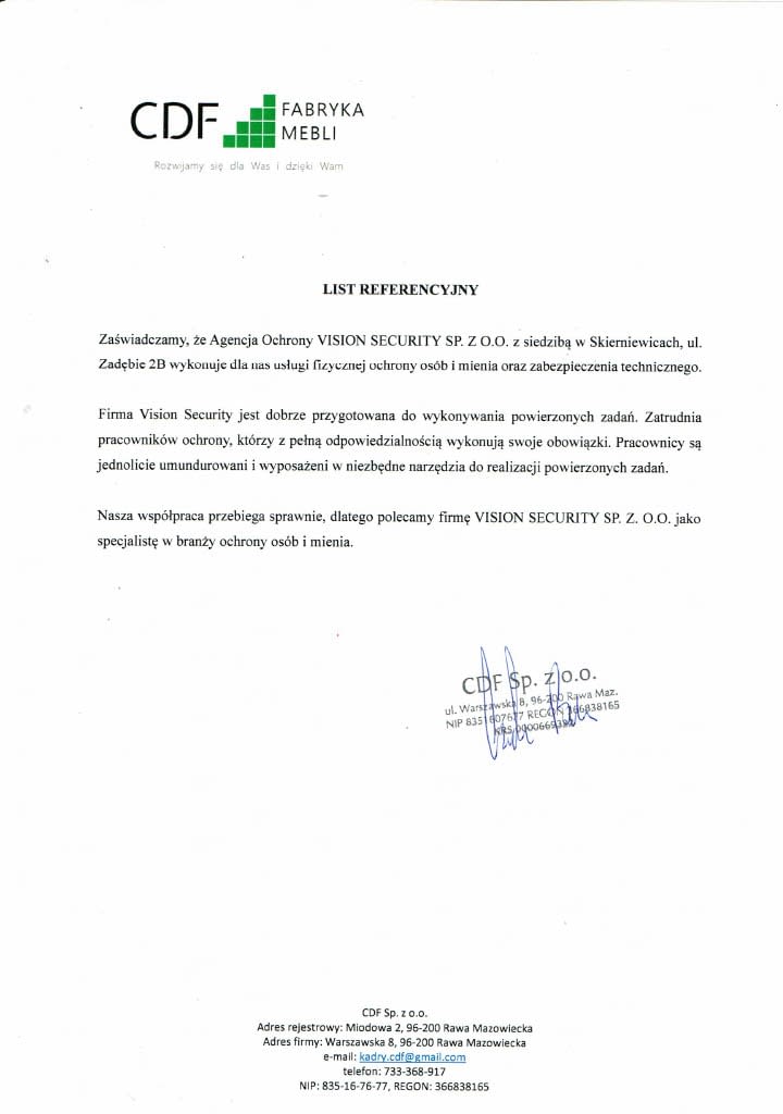 Referencje CDF Fabryka Mebli